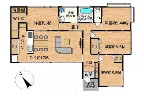 駐車スペースは4台可能で、ご家族や来客時にも便利です。ウォークインクローゼット付きで収納力のある住まいです。