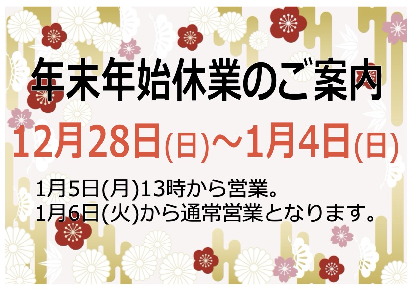 年末年始休業のご案内